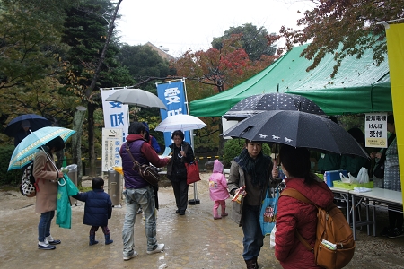 当日は、中電グループ全体で参加者総数700名の方々の申し込みを受けておりましたが、早朝からあいにくの雨となり、小さいお子様連れでの参加ということもあり、若干来園者が減りましたが、それでも当健保参加者80名強の皆さんが紅葉の始まった園内をクイズラリーを楽しみながら散策いただきました。